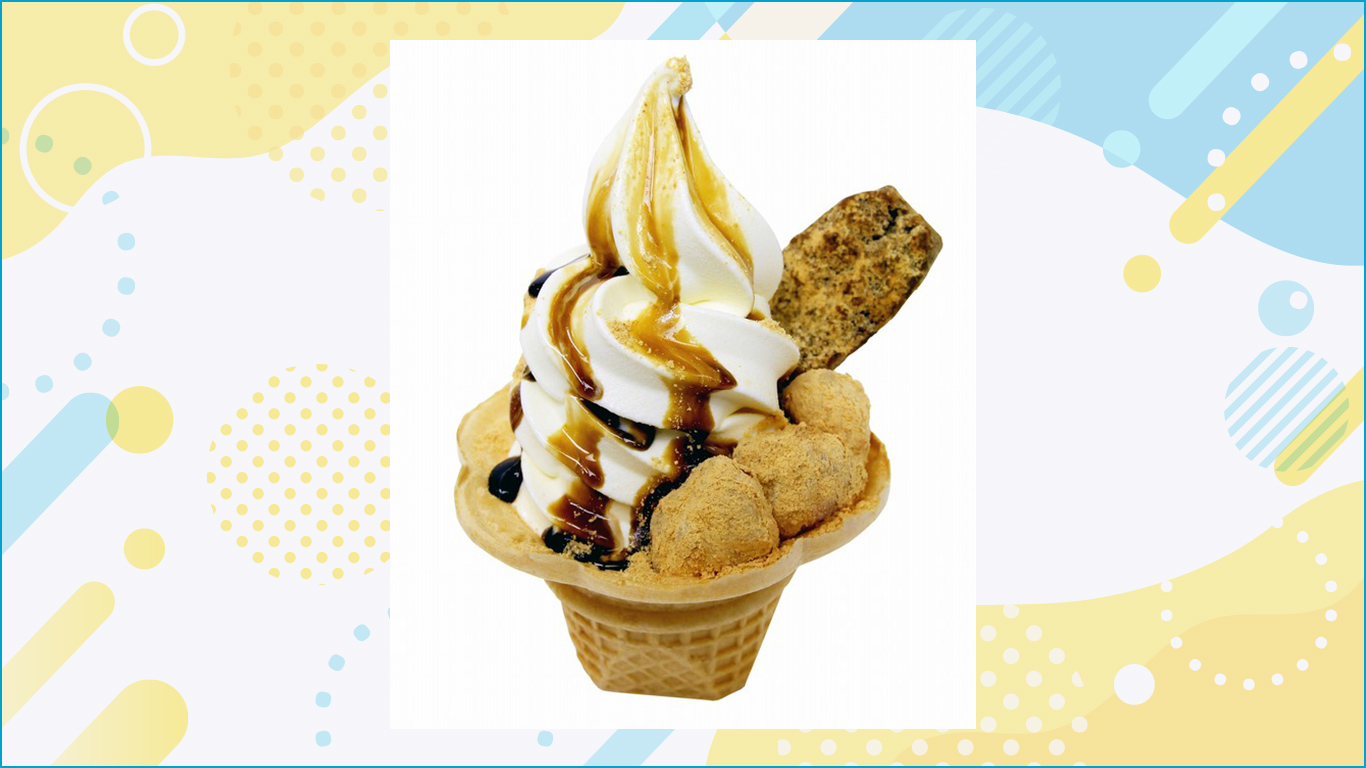 香ばしいきな粉と濃厚な黒蜜がたっぷりの桔梗信玄ソフトに桔梗信玄棒をプラスしました。