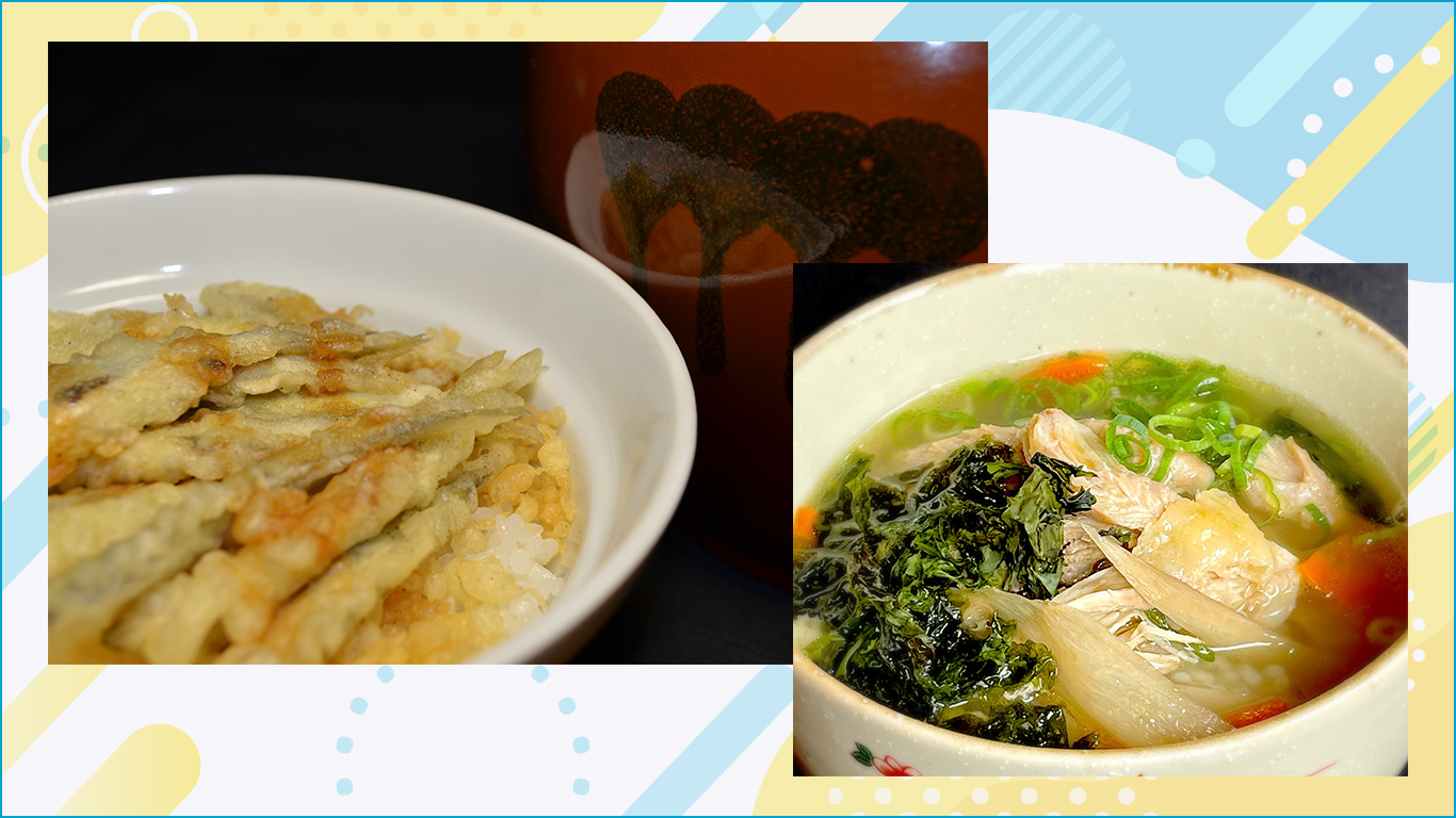 山中湖産のわかさぎを使用し、秘伝のタレで仕上げる「わかさぎ天丼」と、鶏のうまみたっぷりの「鶏だし茶漬け」、是非ご賞味ください!