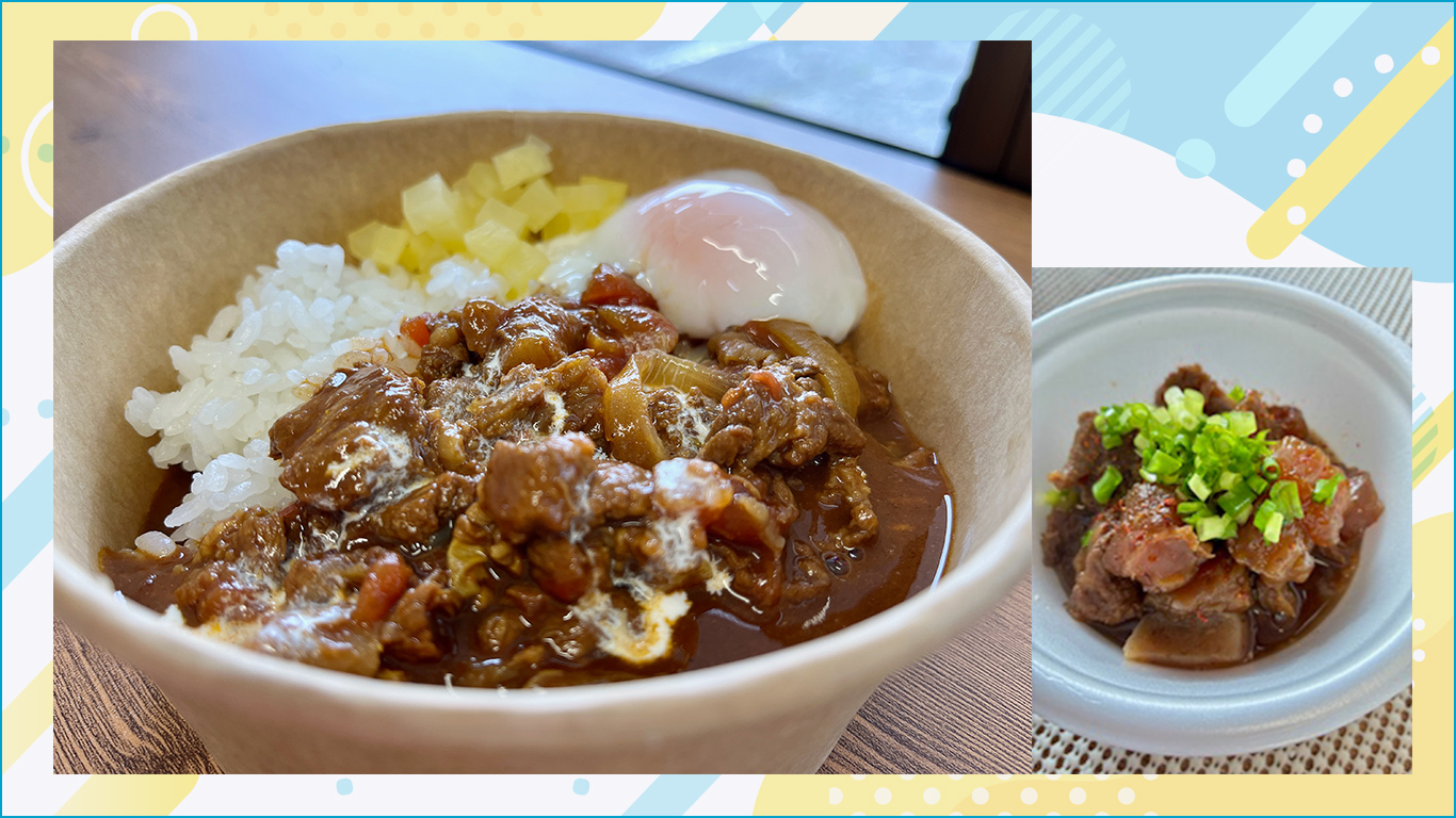 山梨名物の馬肉のすじを、丁寧にじっくり煮込んで、とろけるほどやわらかく仕上げました。くせがなく、あっさりしながらもコク深い味わいで、カレーとの相性も抜群です。