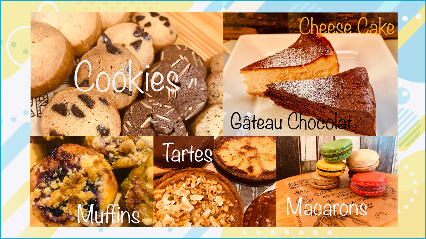 クッキー、マフィン、マカロン、タルトなど、こだわりの焼き菓子をたくさんご用意して、お待ちしております。