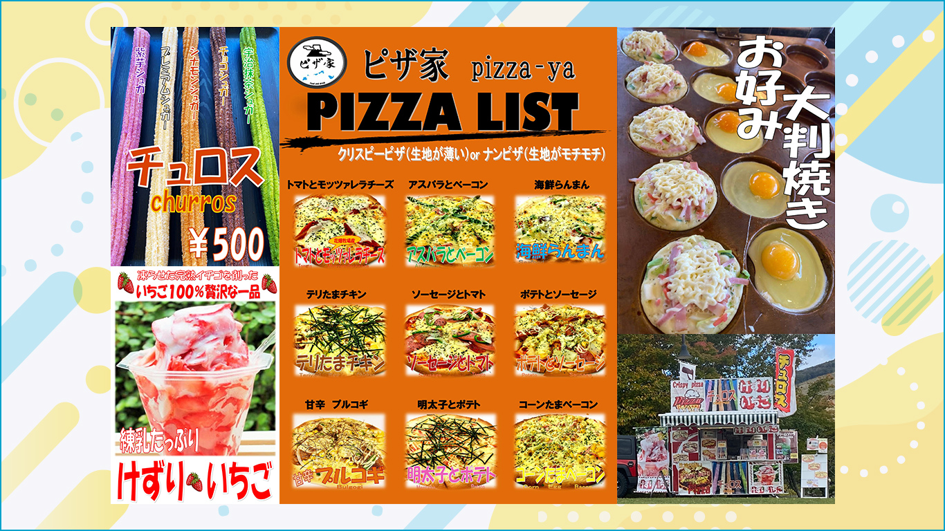 山梨県産の鹿肉を使用したジビエ料理や、子供が喜ぶりんご飴等のスイーツ&ドリンクを提供します!